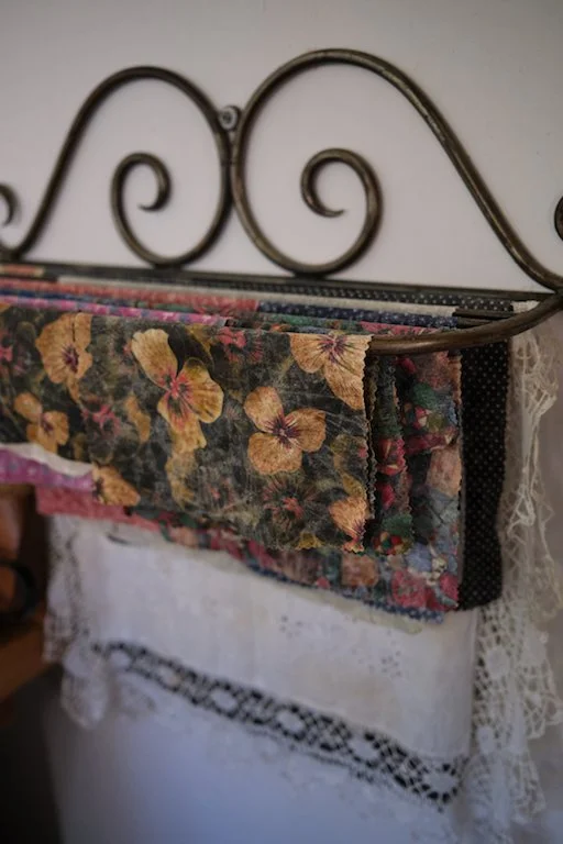 Patching clothes, mending minor chips in plates and cups. When I am cutting off elastic waist bands that are going in the undies, I keep the elastic to tie up the rubbish bags. Same with ribbons from garments – keep all for tying up. Saving all brass hooks over the years to make new hanging racks.