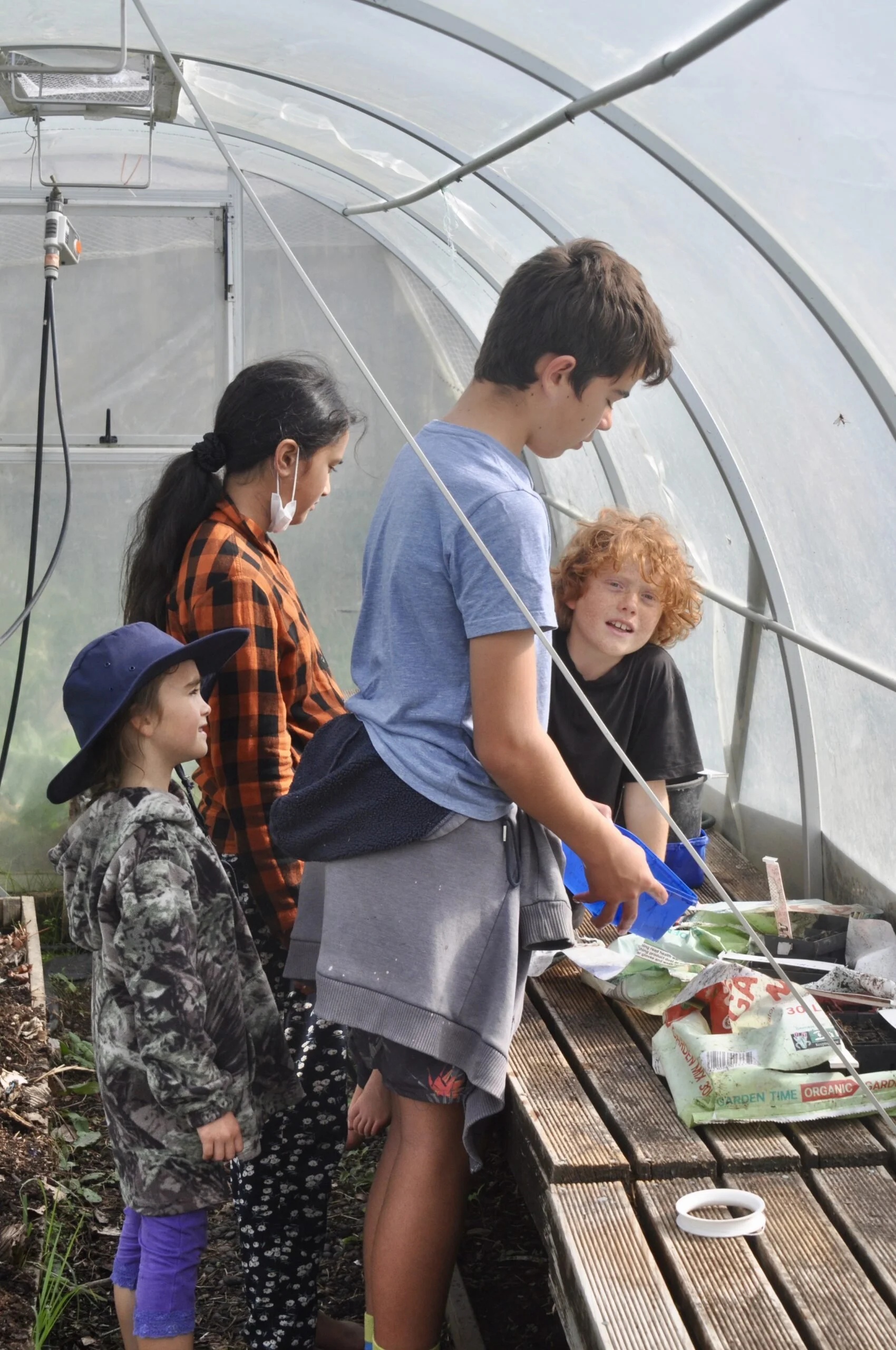Everyday the Okiwi school students spend 30 minutes after lunch working together in their groups on their designated task for the term . There are four tasks which include gardening & composting, recycling, propagation, animals and once weekly rat trapping.